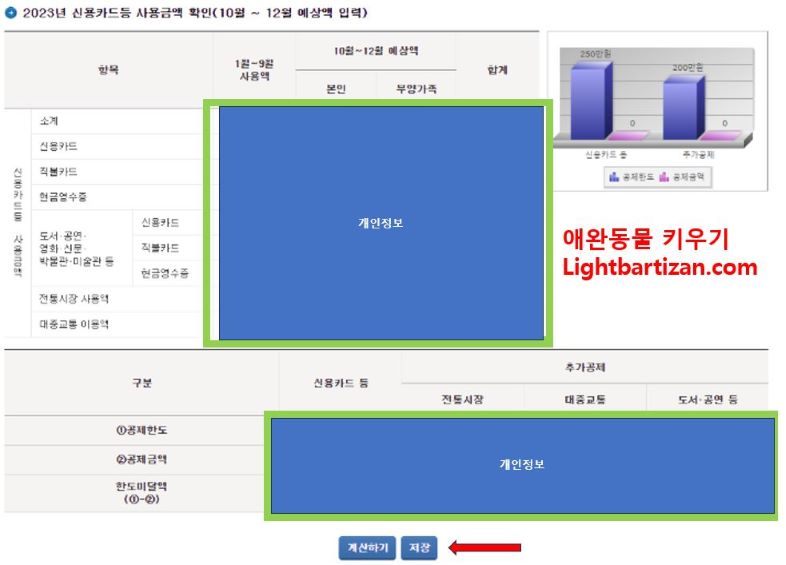 ※ '계산하기', '저장하기'를 반드시 클릭해주시기 바랍니다.